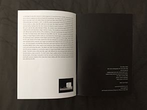 The empty vessel Art Catalogue is a thirty two page A5 book with matt laminate, uncoated and spot UV pages designed by Mark St.John Ellis nagDesign with graphic layout by Carrie Lewis and funded by Cavan Arts.